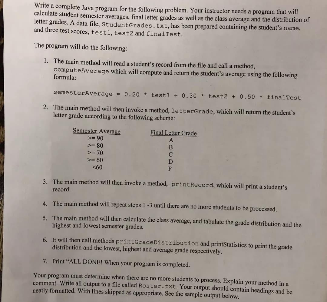 Solved Write a complete Java program that do the | Chegg.com