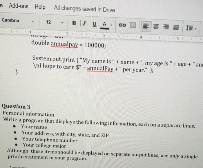 Solved Personal information Write a program that displays | Chegg.com