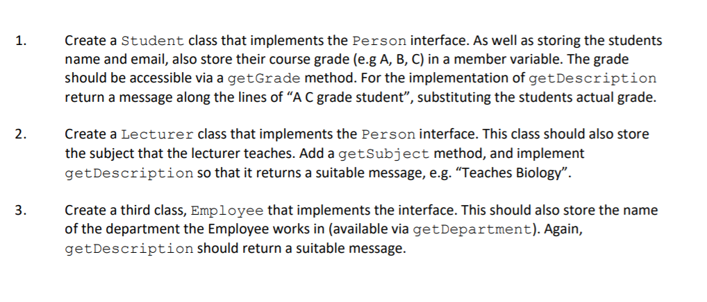 Solved 1. Create a Student class that implements the person | Chegg.com