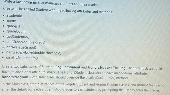 Solved Write a Java program that manages students and their | Chegg.com