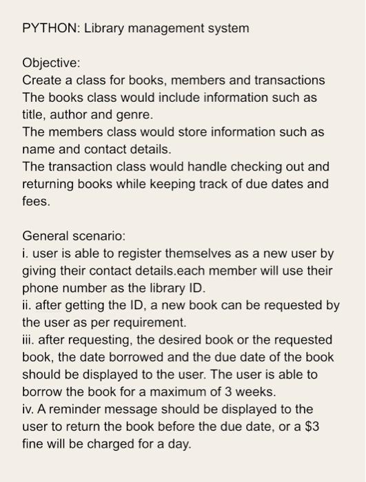 Solved PYTHON: Library management system Objective: Create a | Chegg.com