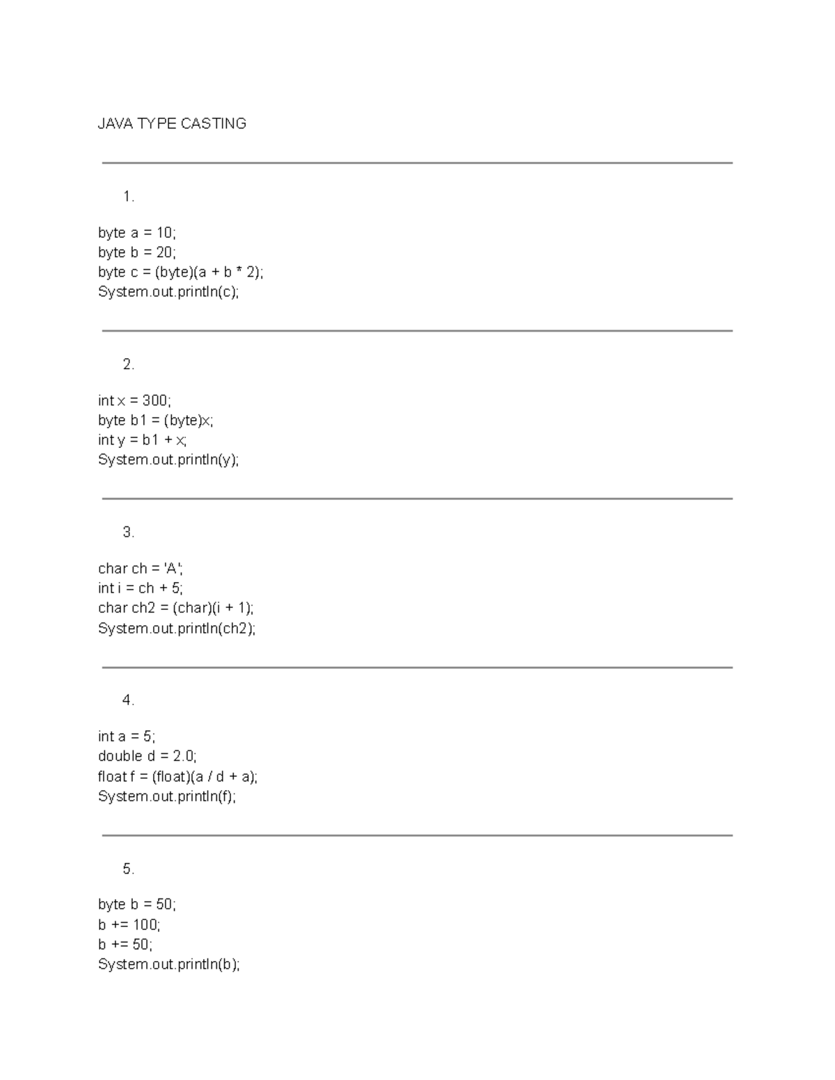 JAVA TYPE CASTING Notes and Examples - Studocu