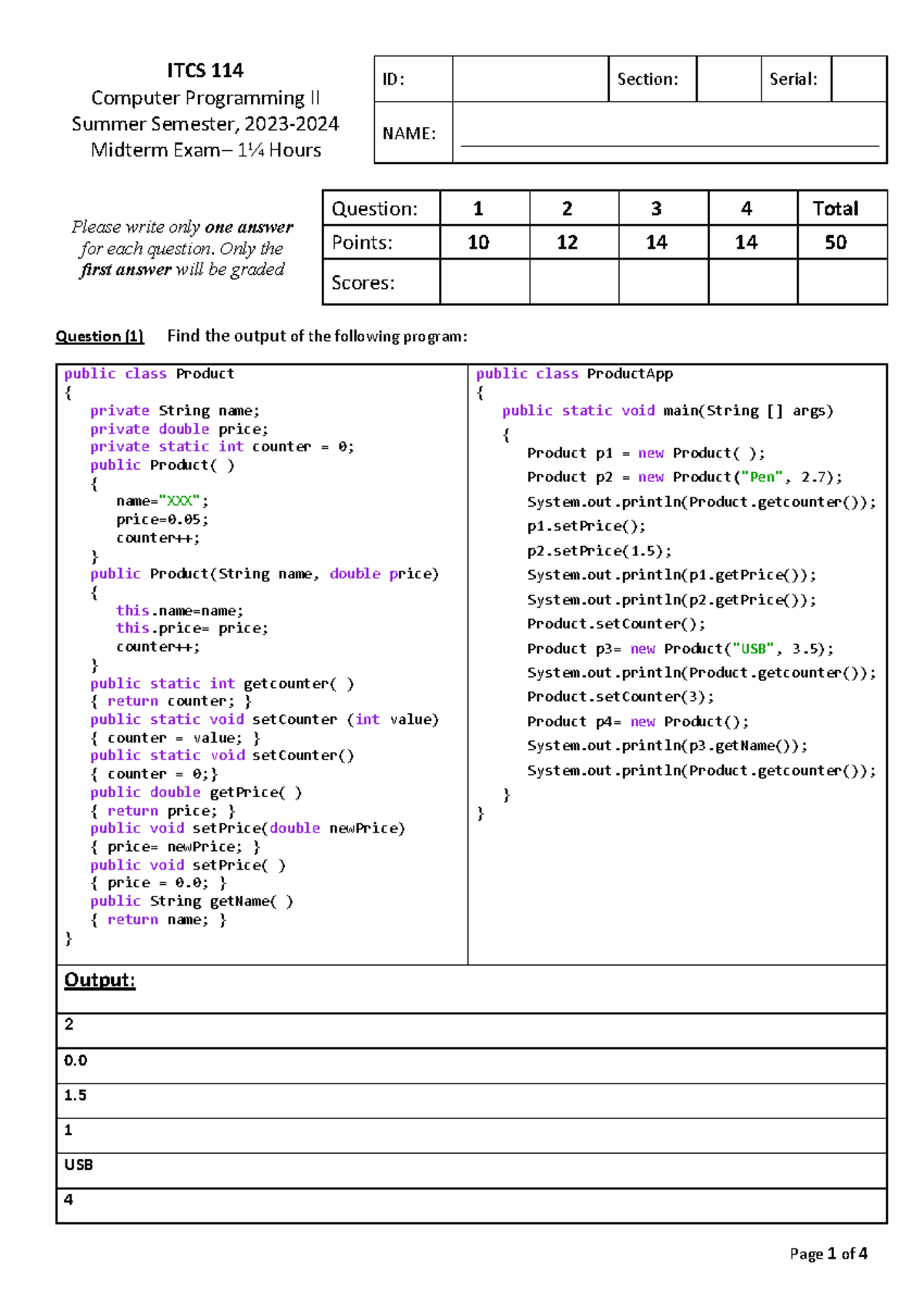 ITCS 114 Computer Programming II Midterm Exam Summer 2023 - Studocu
