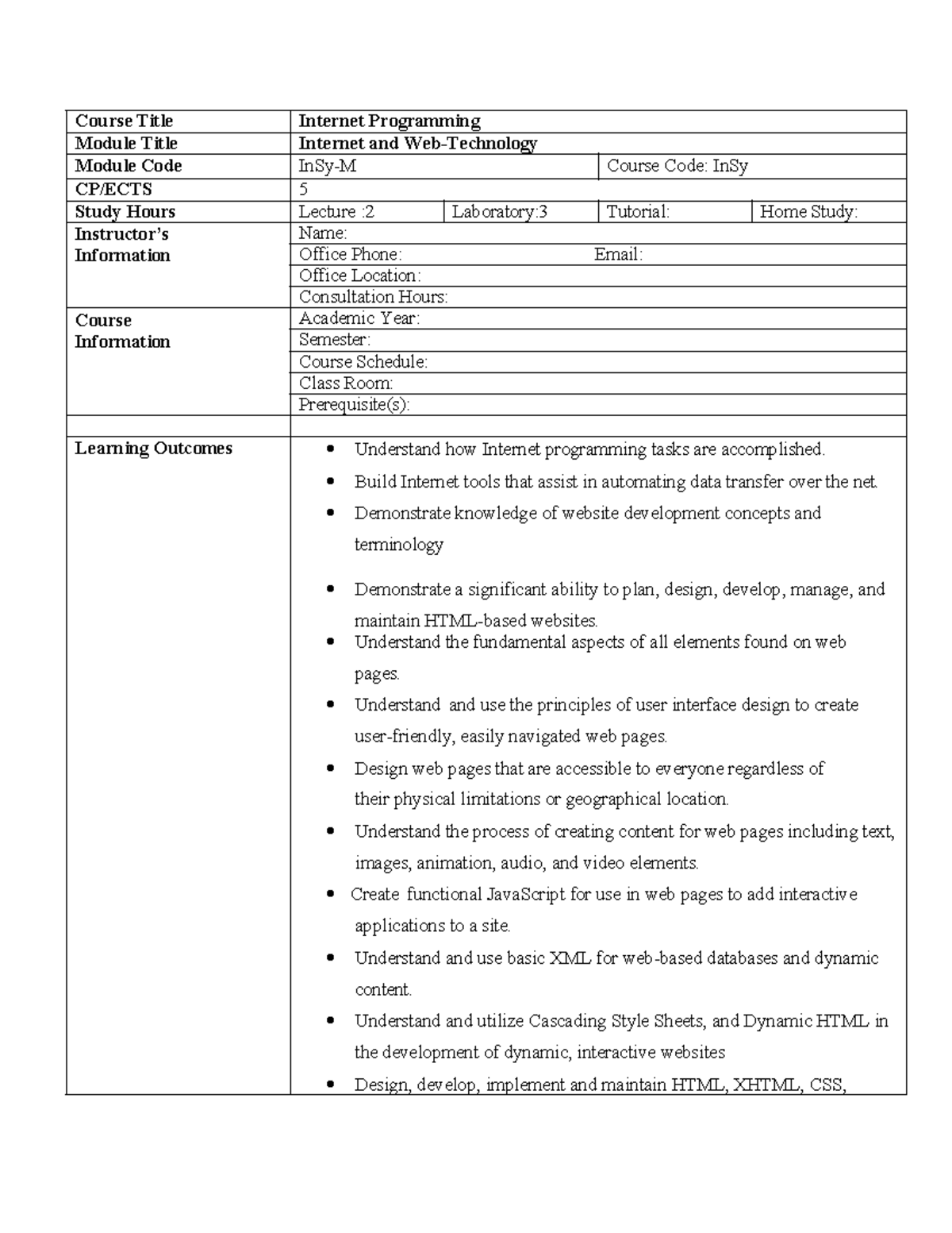 IP Coutline - Internet Programming Lecture Notes and Exercises - Studocu
