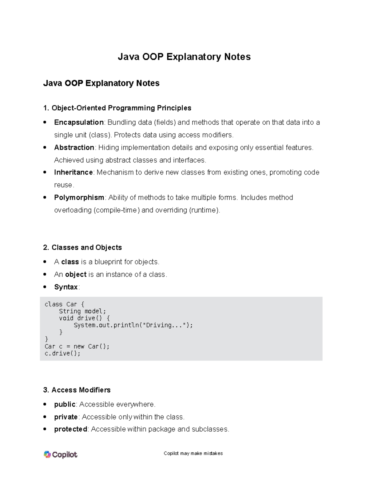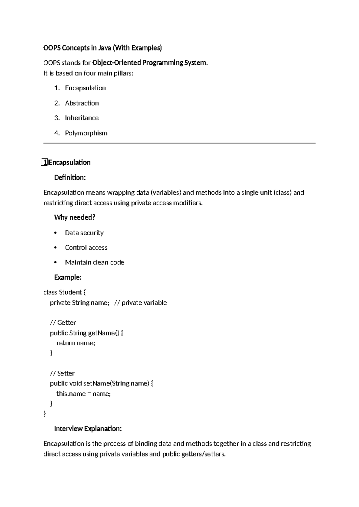 OOPS Concepts in Java: Key Principles & Examples - Studocu