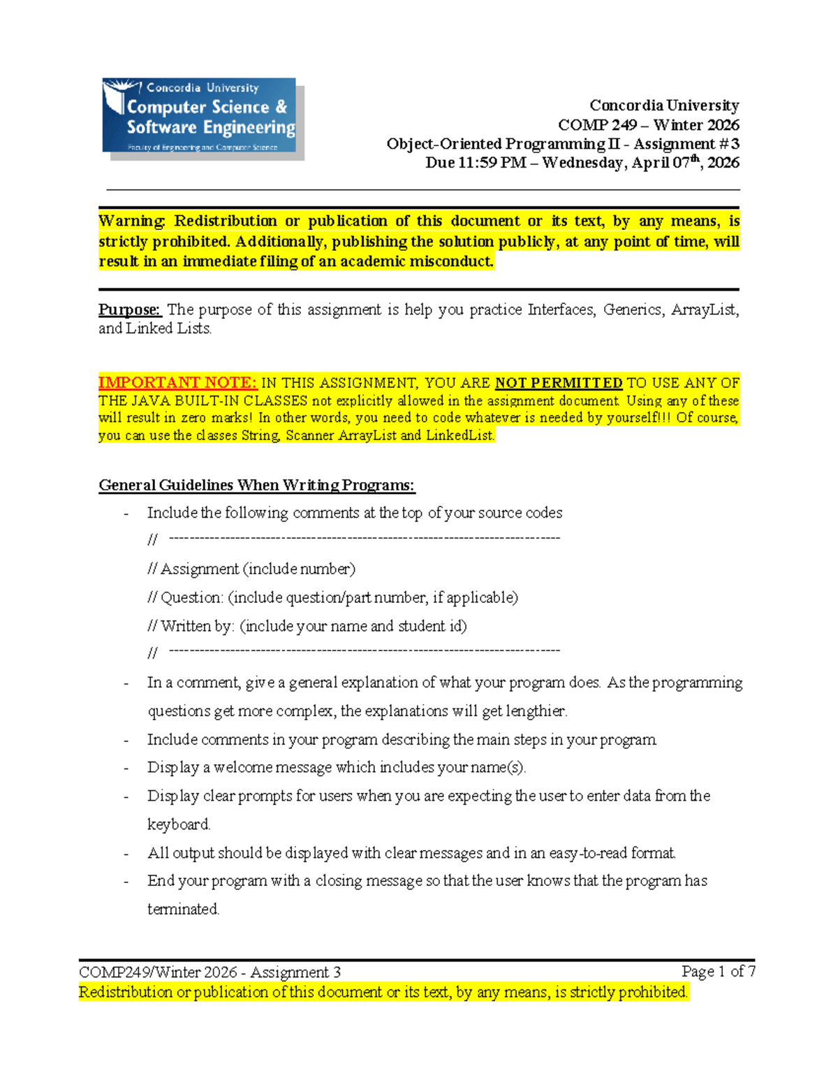 COMP 249 - Programming II Assignment 3 Overview and Guidelines - Studocu