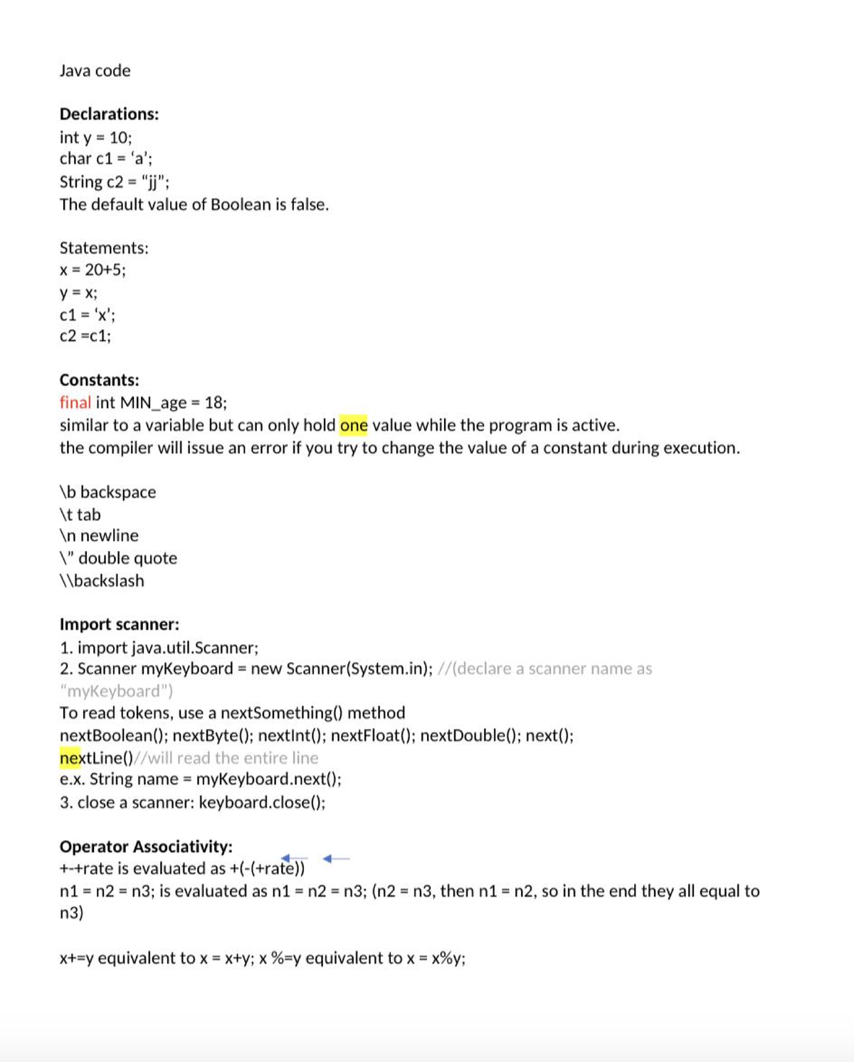 Java Notes: Key Concepts and Code Declarations - Studocu