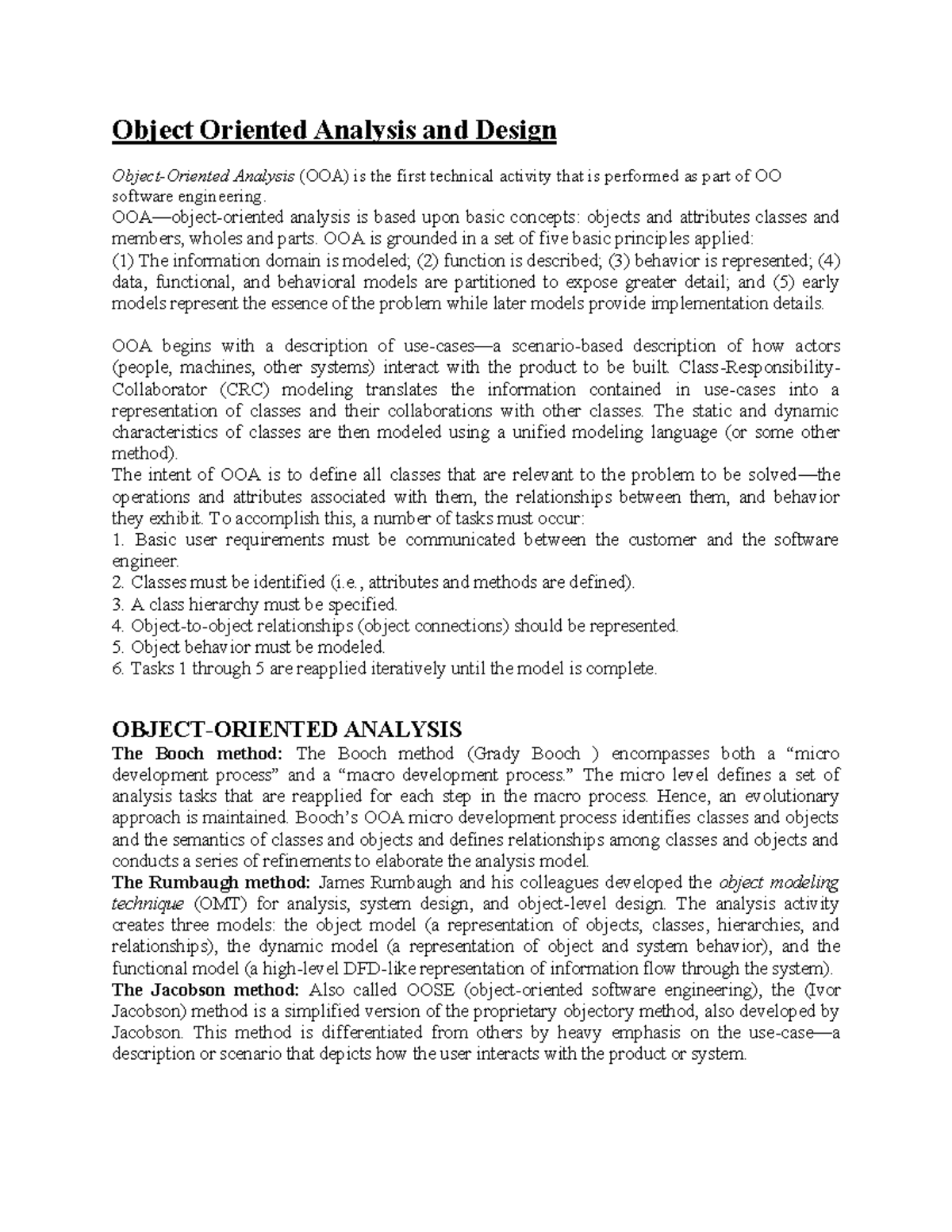 Chapter 8: Object Oriented Analysis and Design (OOA&D) Overview - Studocu