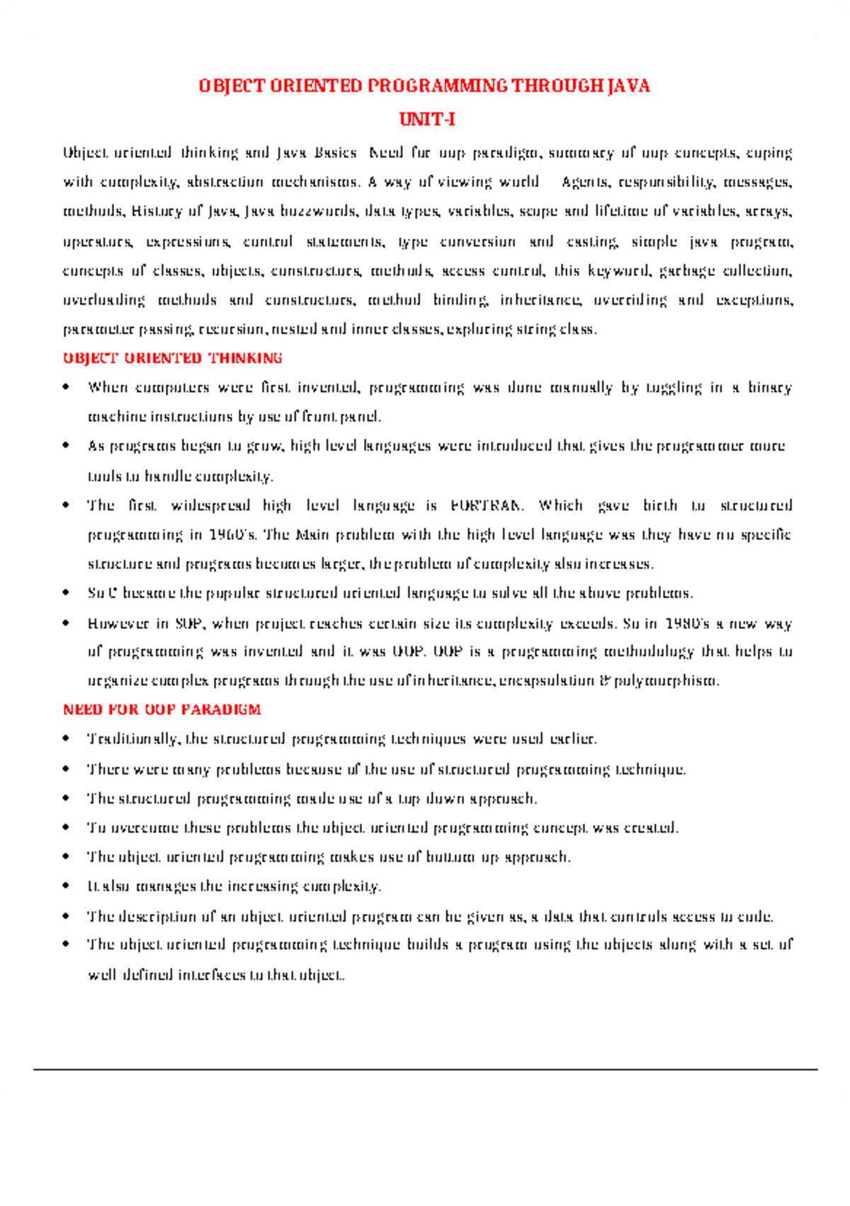 JAVA UNIT-I Notes: Object Oriented Programming Concepts in Java - Studocu