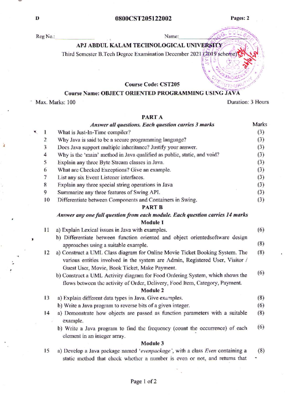CST205 Dec 2021 - Object Oriented Programming Question Paper - Studocu
