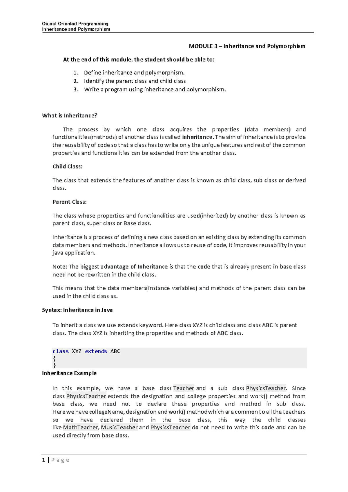 Module 3: Inheritance and Polymorphism in Object Oriented Programming ...