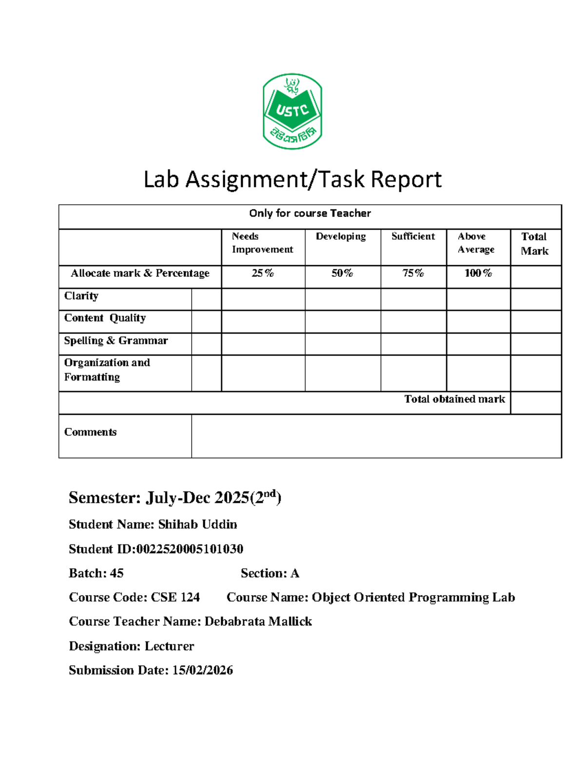 OOP with Java Lab Manual (24BAI10198) - Exercises and Solutions - Studocu