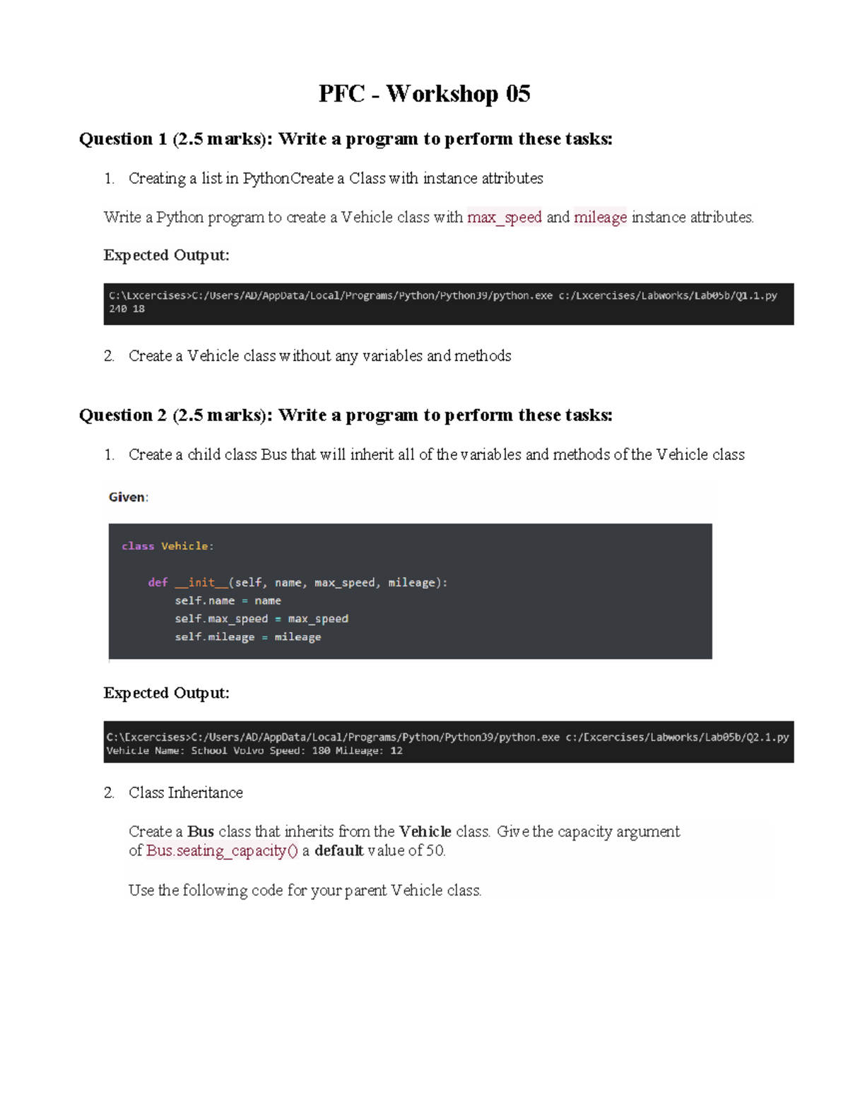 Lab05b - PFC - Workshop 05 Question 1 (2 marks): Write a program to ...