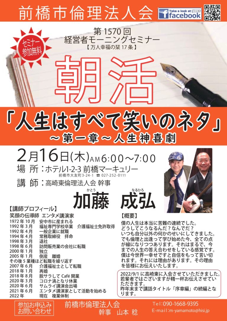 2月16日「人生はすべて笑いのネタ」 加藤 成弘 | 群馬県倫理法人会