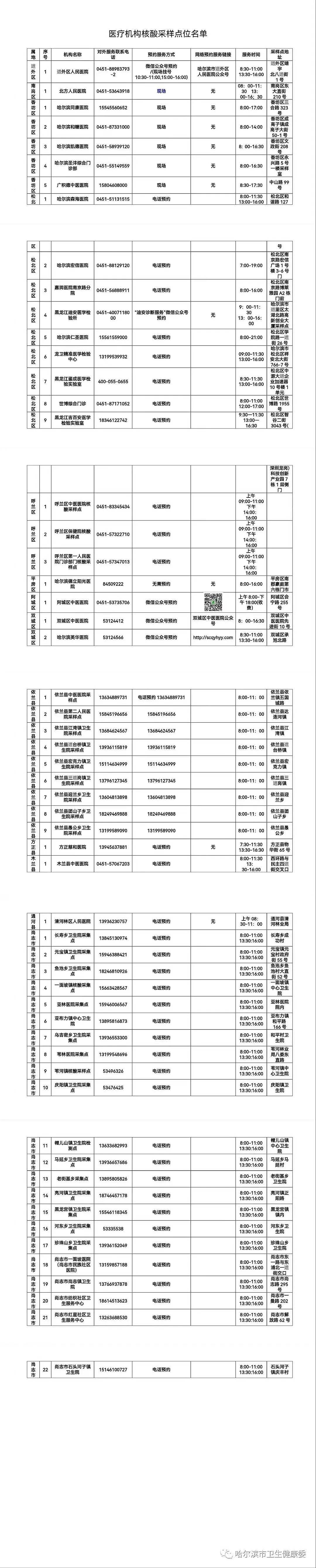 最新!哈市核酸采样点位公示(12月16日更新)_名单_信息_周晓柠