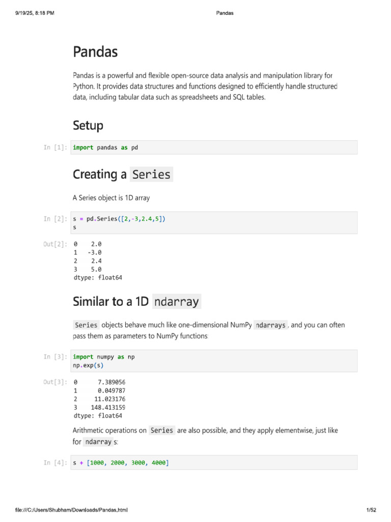 Pandas Library Notes For Beginners | PDF