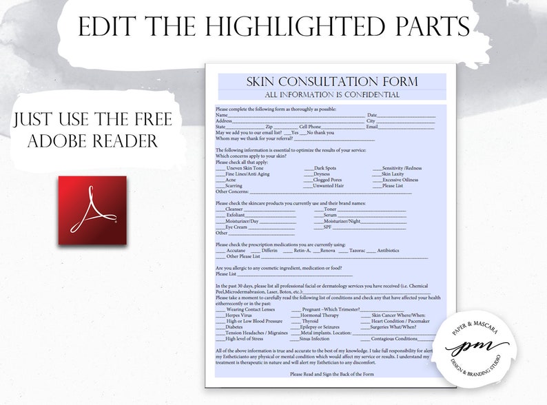 EDITABLE Facial Consultation Form, Client Intake Form,beauty Salon ...