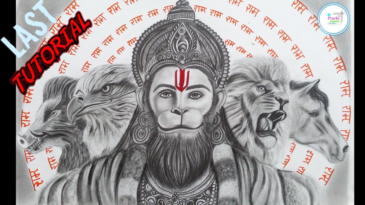 How to draw Panchmukhi Hanuman ji Drawing // Panchmukhi Hanuman ji ...