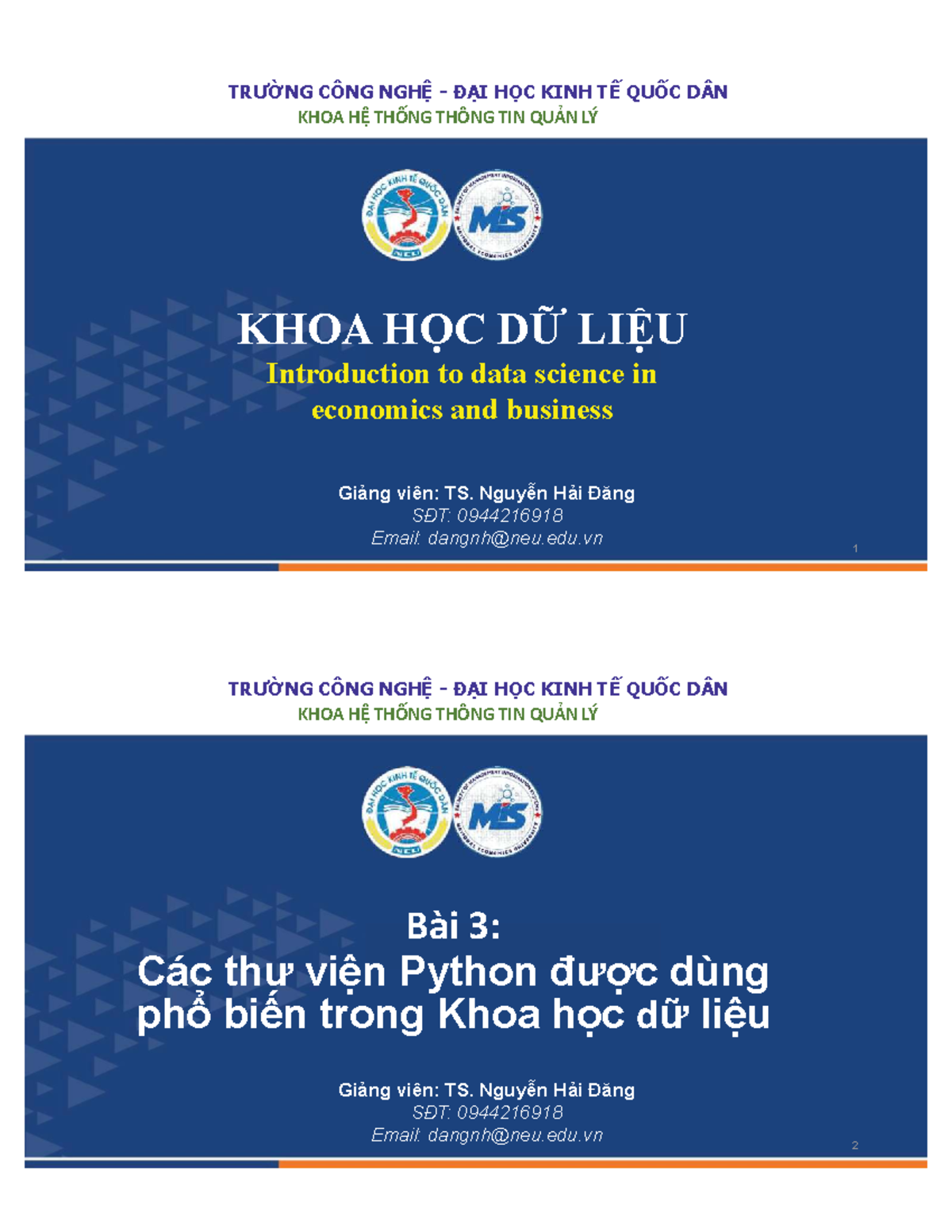 Bài 3: Thư viện Numpy và Pandas trong Khoa học Dữ liệu - Studocu