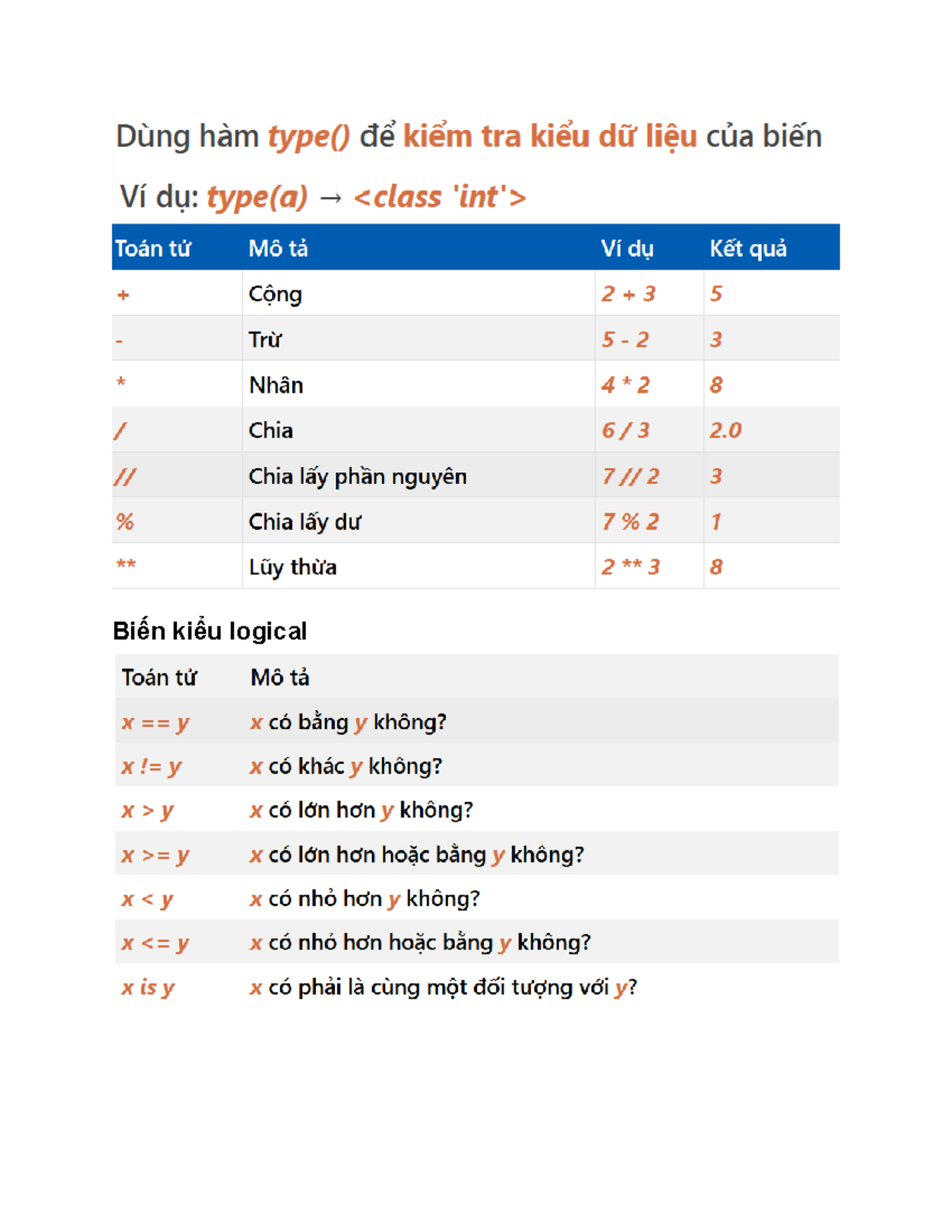 Tài liệu học Python: Biến kiểu, Numpy, Pandas - Bài giảng 3, 4, 5, 6 ...