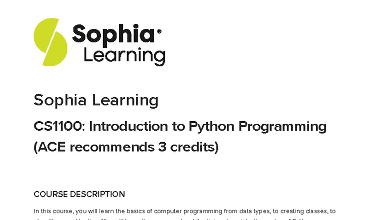 Sophia Learning CS1100: Intro to Python Programming Syllabus - Studocu