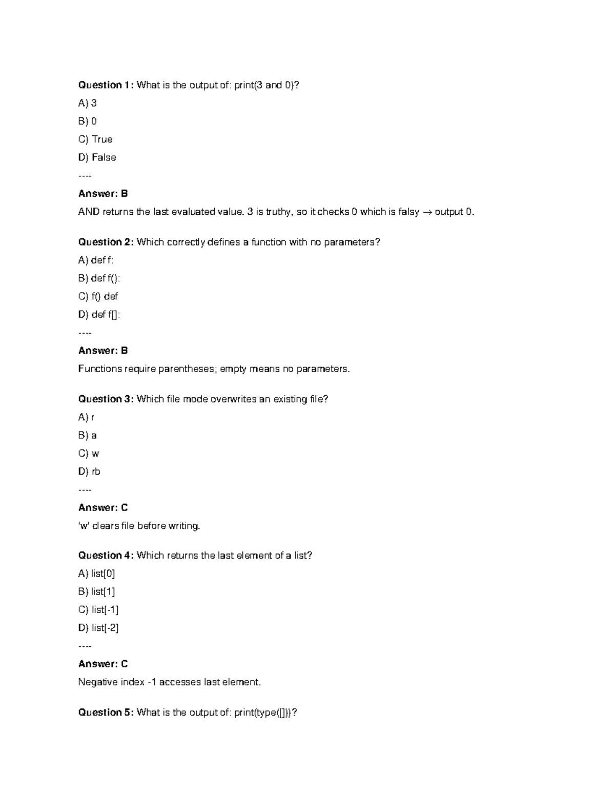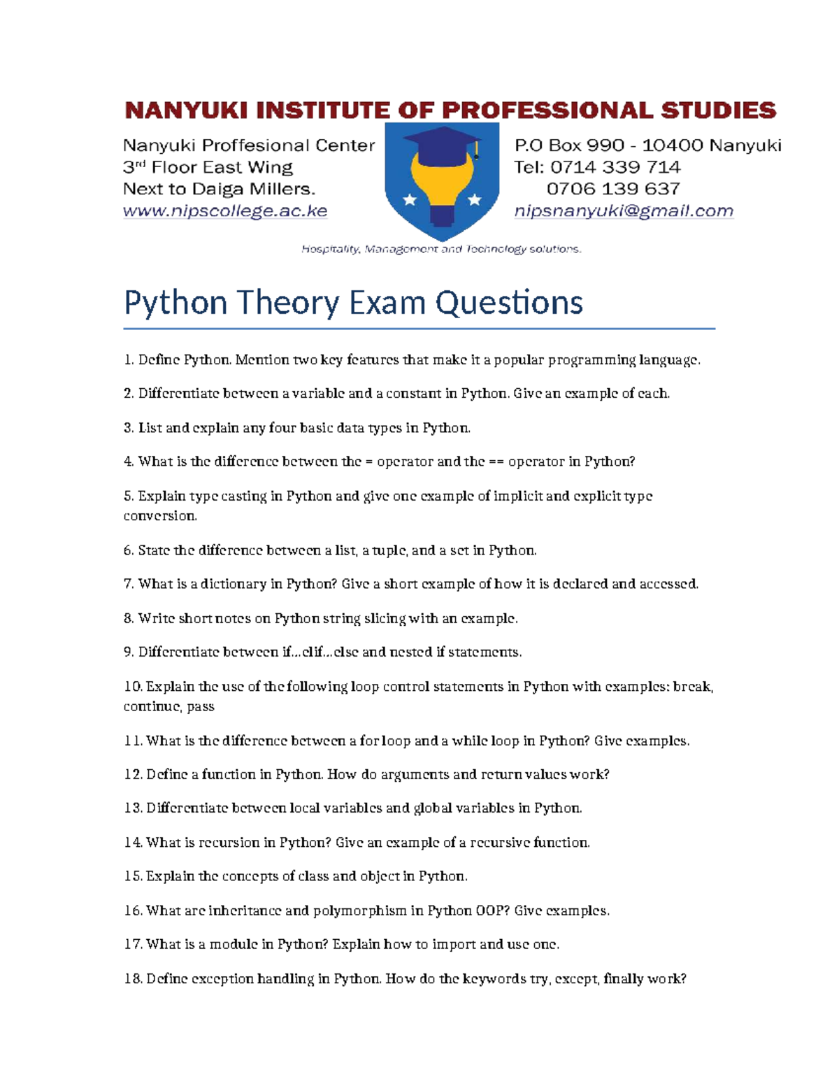 Python Theory Exam Questions (PY101) - Studocu