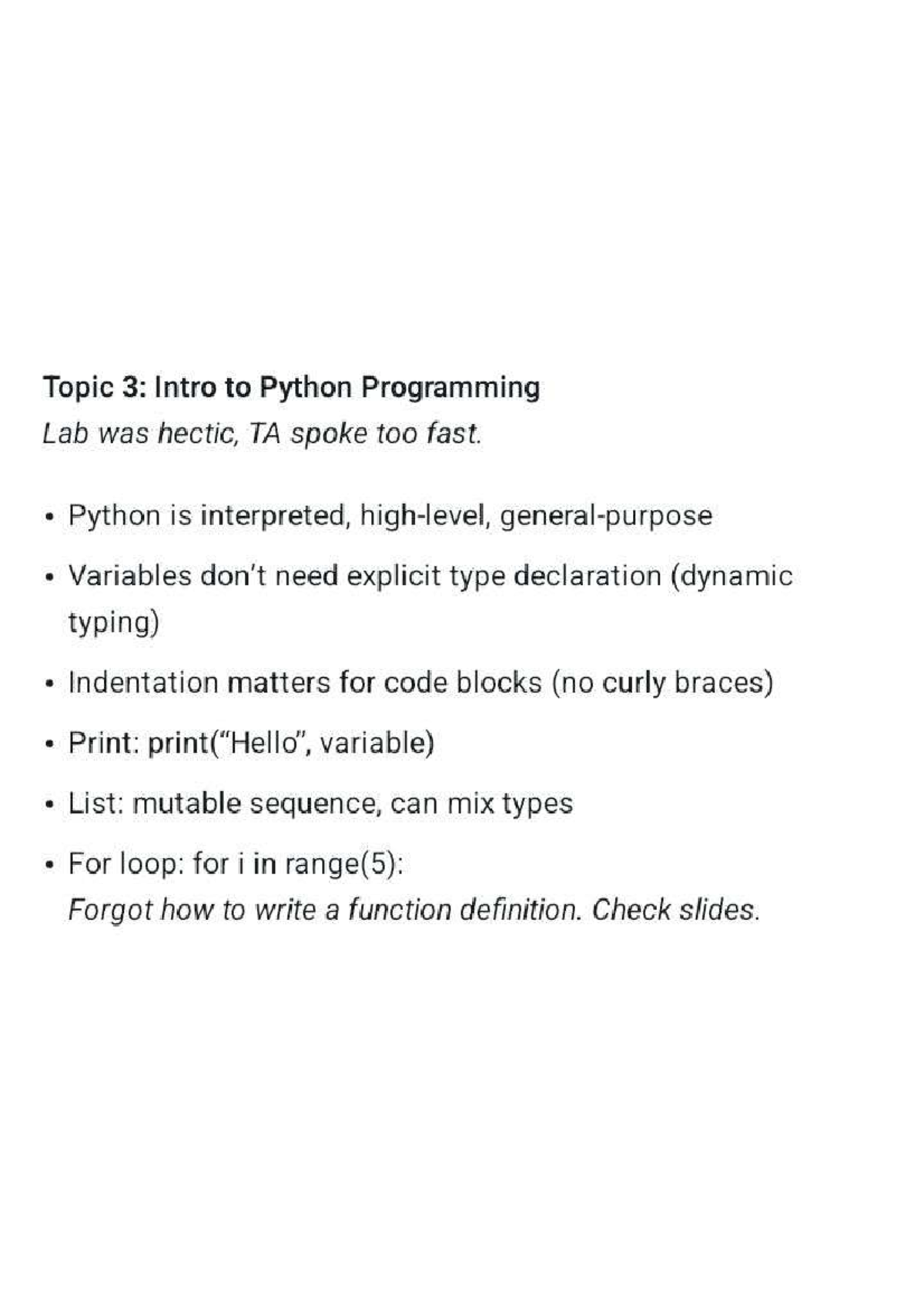 Topic 3: Python Programming Lab Notes (IMG 20260123) - Studocu