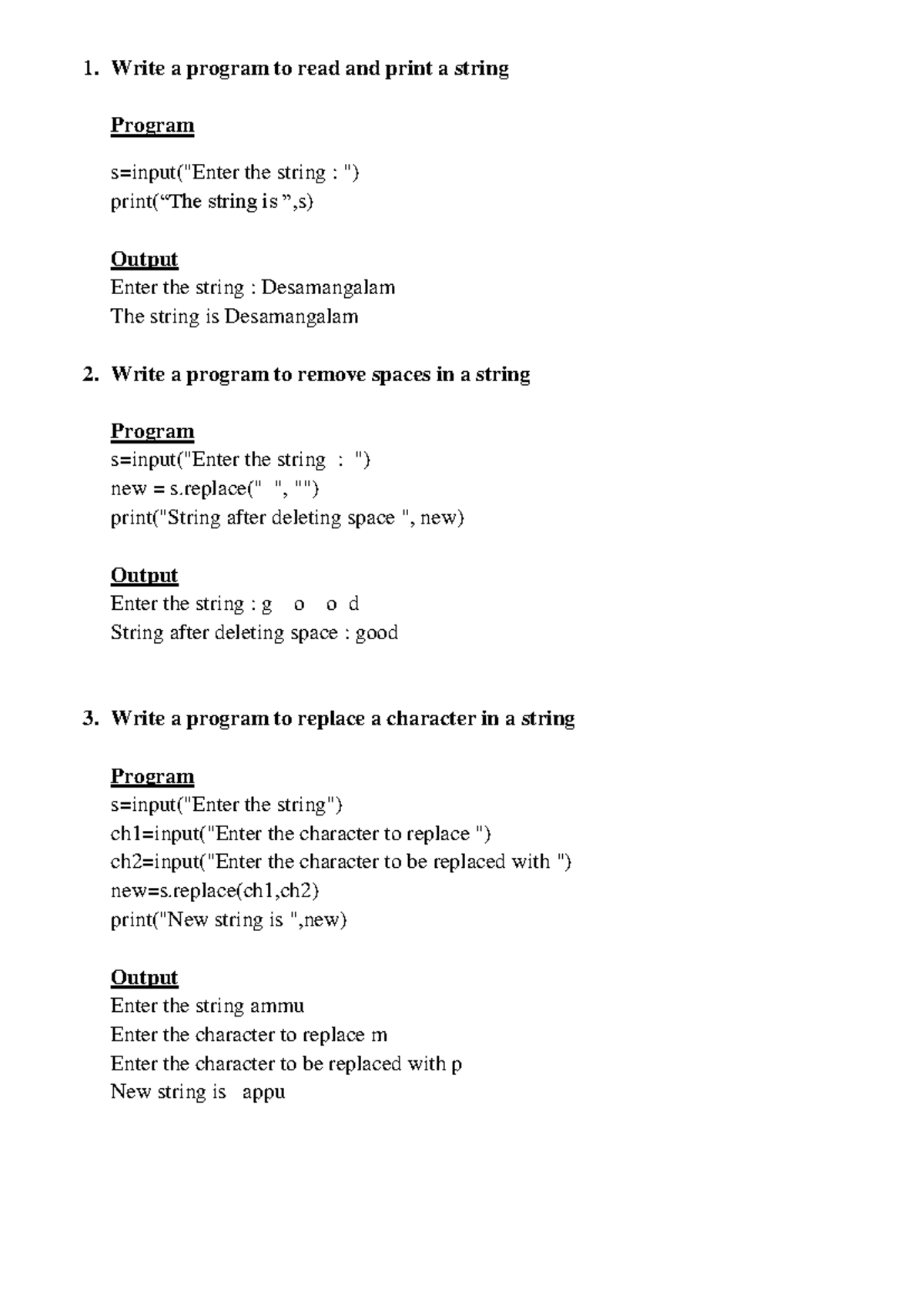 Python Programs for String Manipulation - Course Code PY101 - Studocu