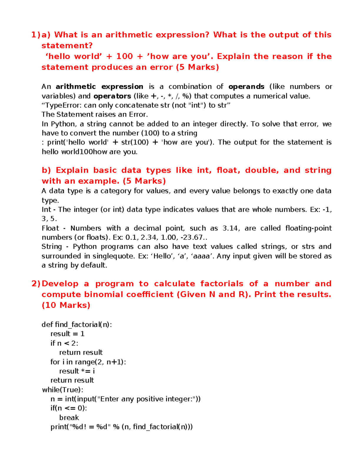Python Programming Question Paper - Course Name: Python Programming ...