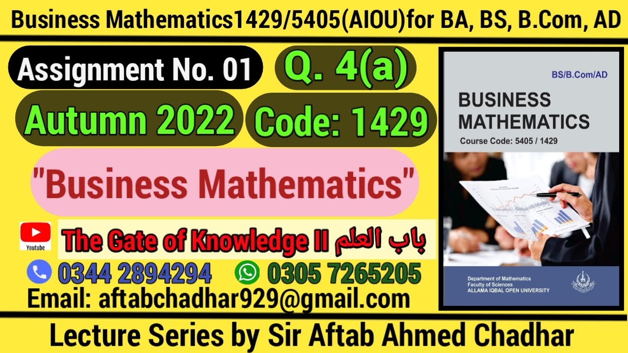 AIOU| Course 1429 | Business mathematics | Assignment 02 | Questions 4 ...