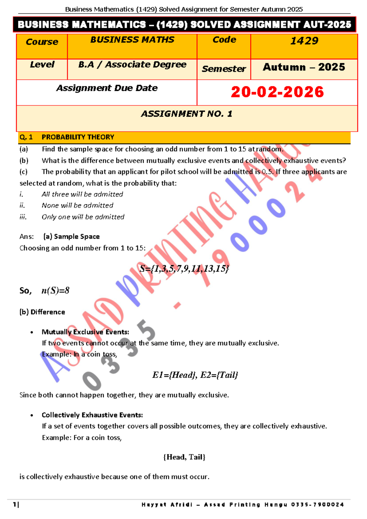 1429-1 (Autumn 2025) - Business Mathematics Solved Assignment - Studocu