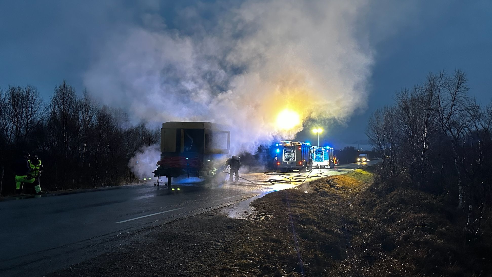 Trafikk, E18 | E18 ved Larvik stengt etter brann i lastebil