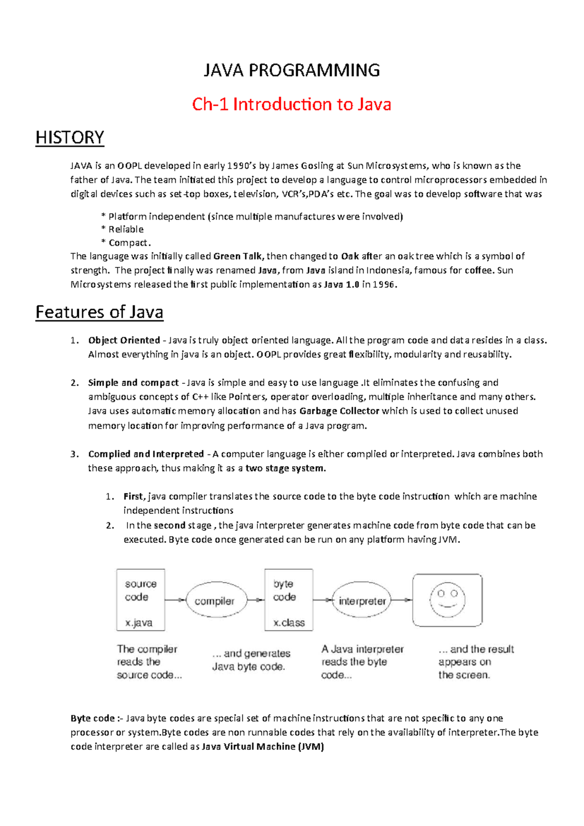 Java Programming unit 1 notes-1 - Java Programming UNIT- 1 Introduction ...
