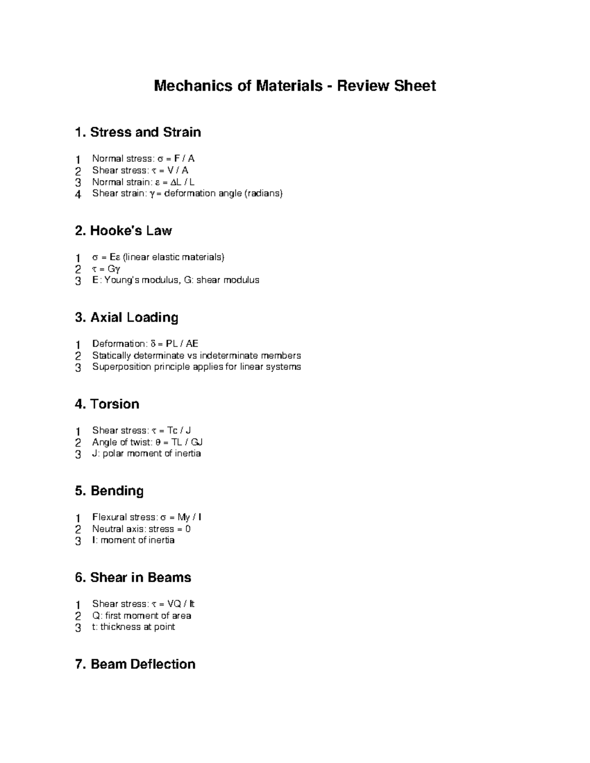 Mechanics of Materials Review Sheet: Stress, Strain, and More - Studocu