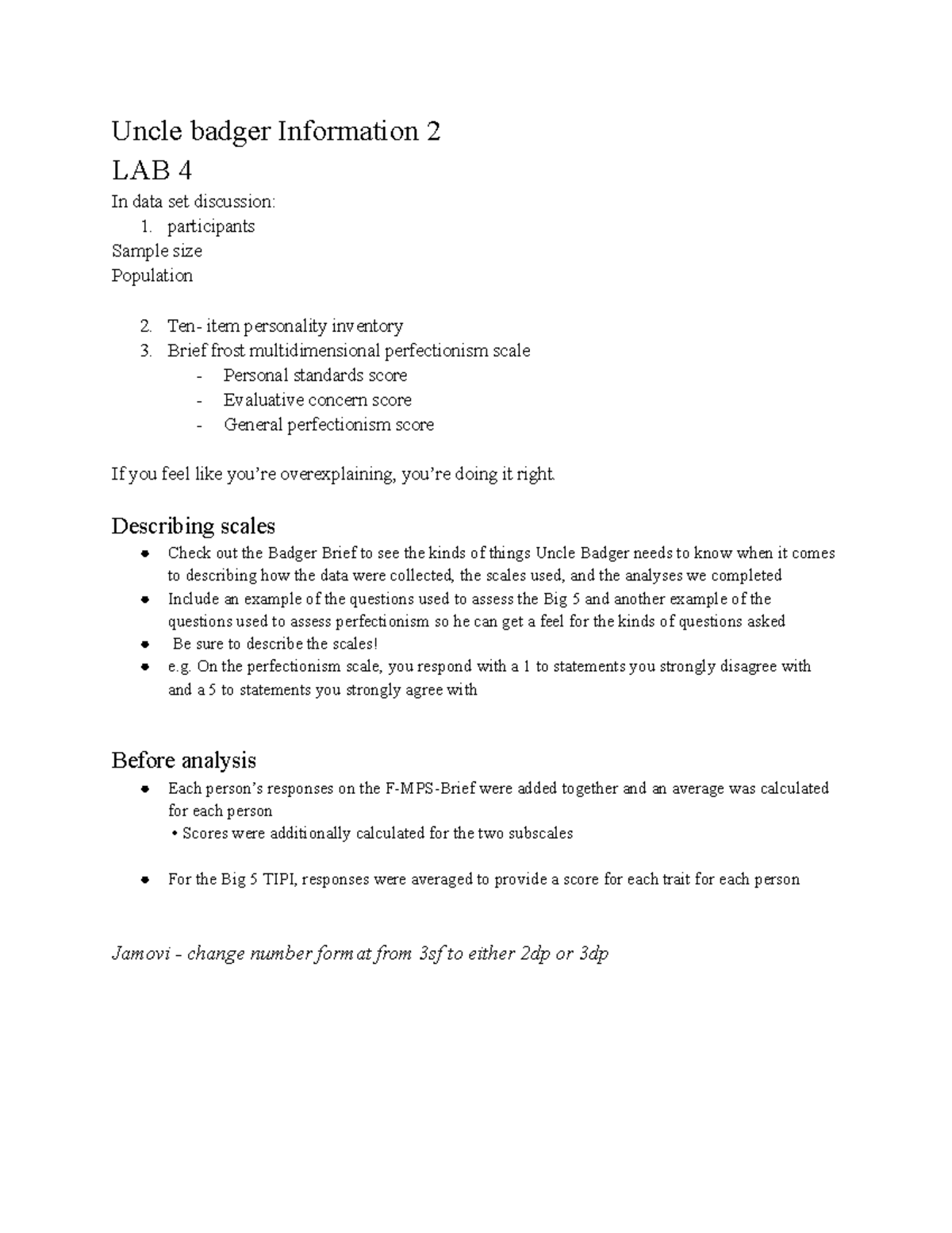 Uncle Badger Info: Personality & Perfectionism Data Set Analysis - Studocu