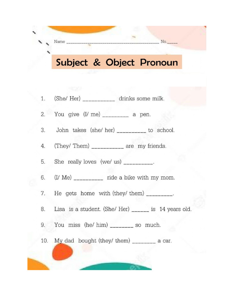 Subject And Object Pronoun Worksheets