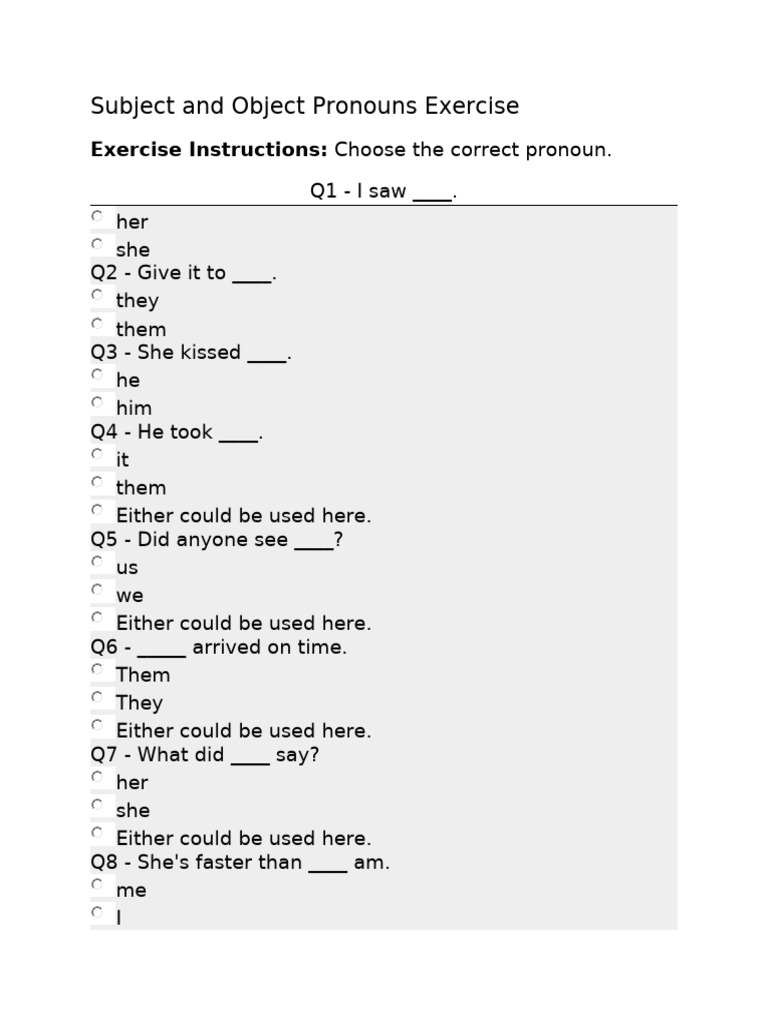 Subject and object pronouns exercise – Artofit