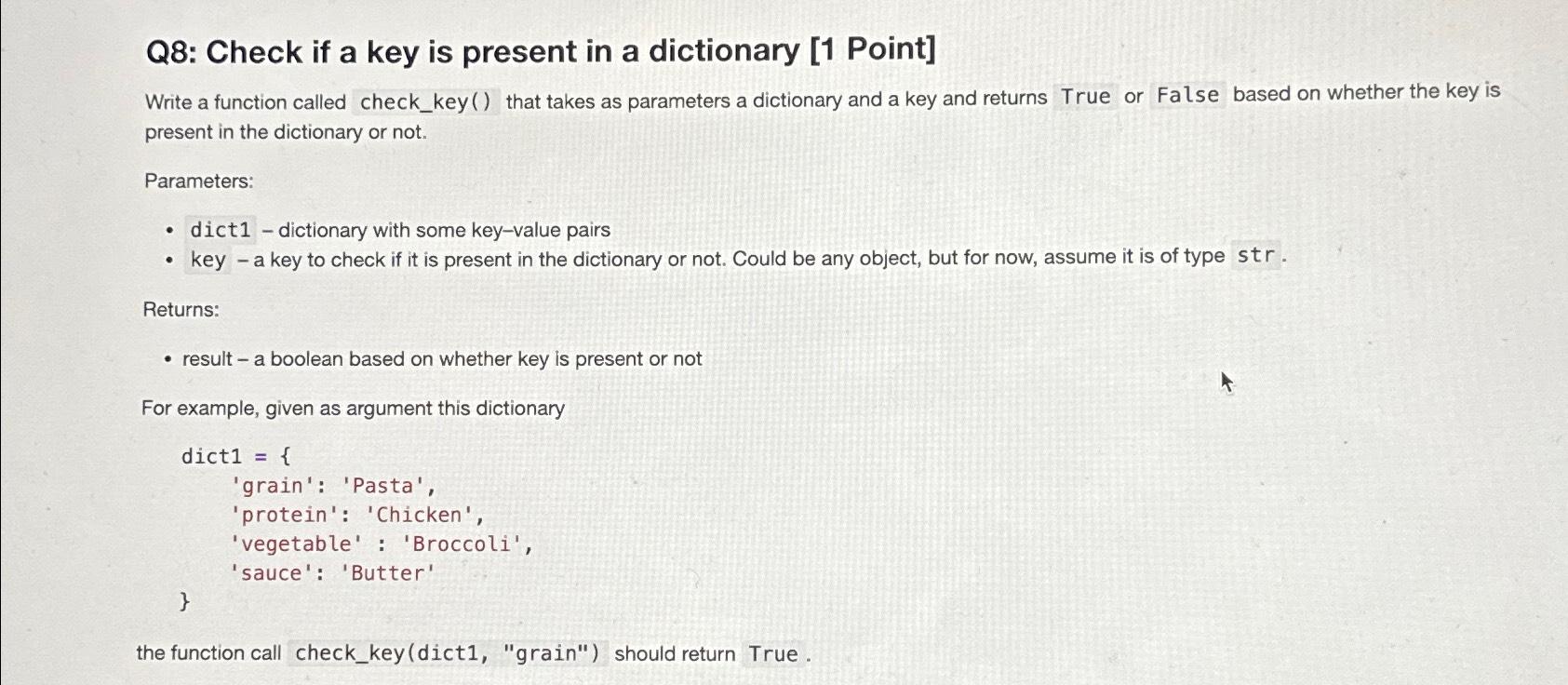 Solved Q8: Check if a key is present in a dictionary [1 | Chegg.com