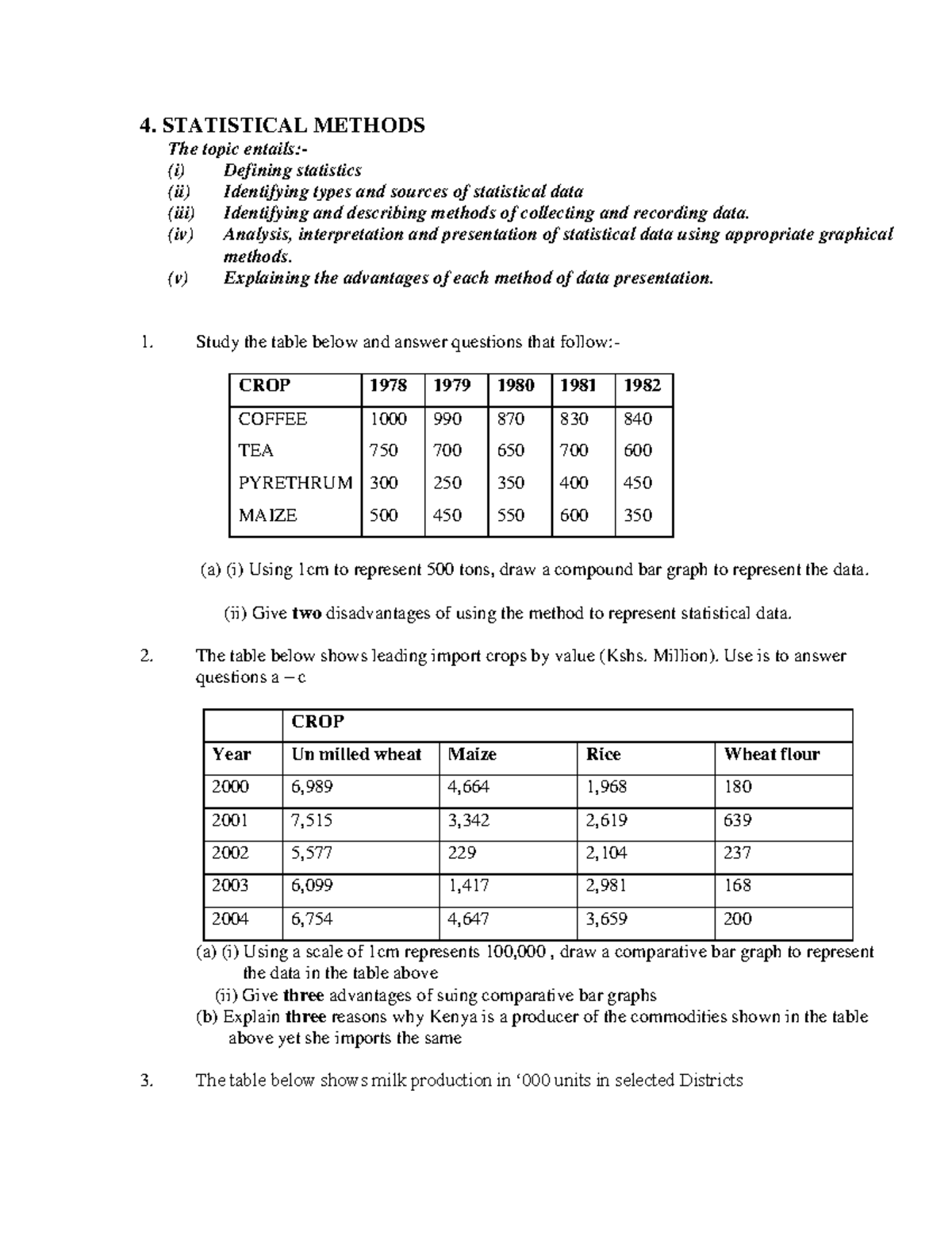 Statistical Methods Q 1 - 4. STATISTICAL METHODS The topic entails:- (i ...