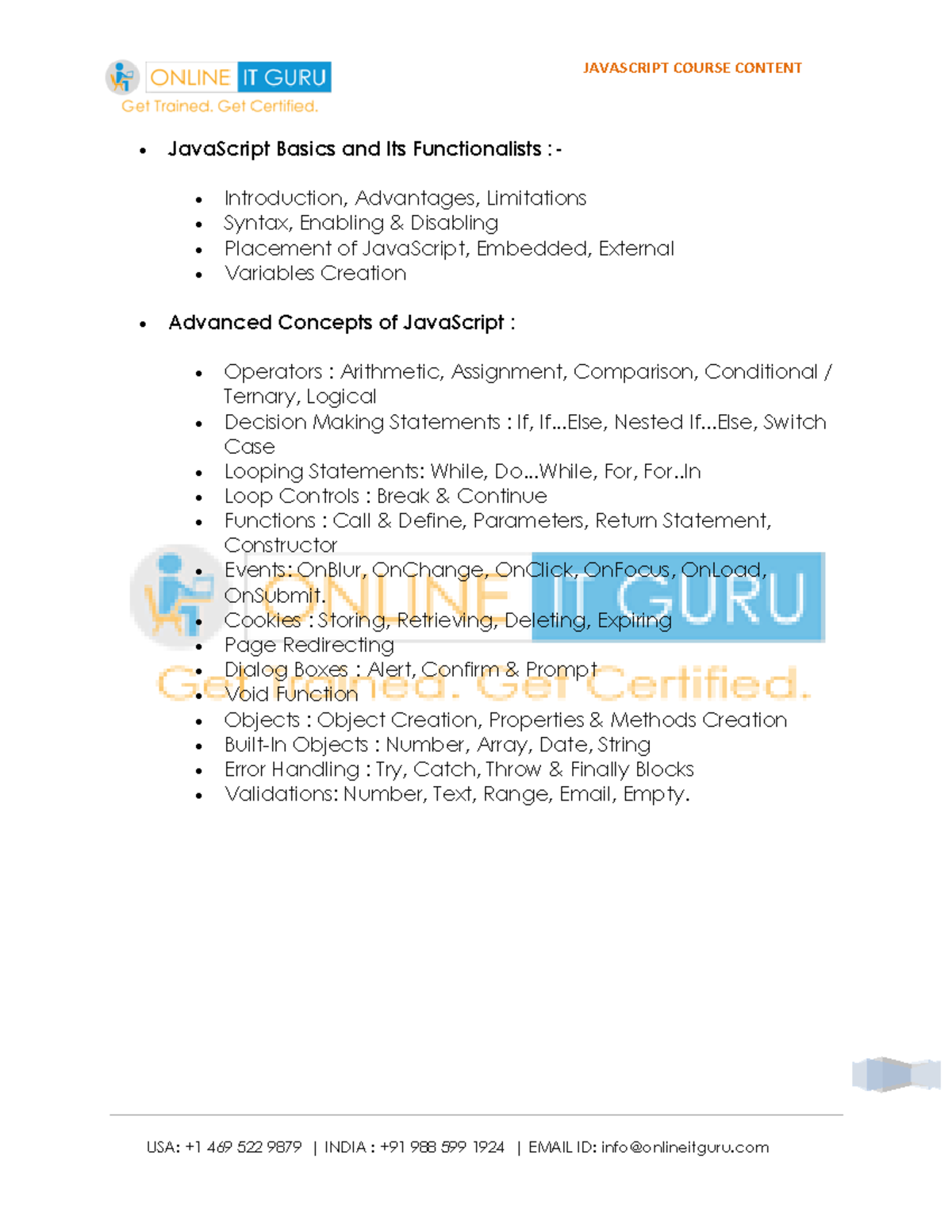 Javascript - Material - JAVASCRIPT COURSE CONTENT USA: +1 469 522 9879 ...
