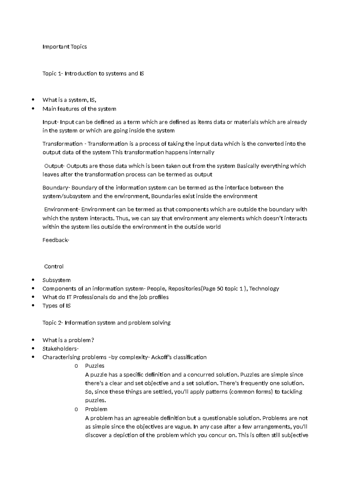 ICT 158 Important Topics for the exams - Important Topics Topic 1 ...