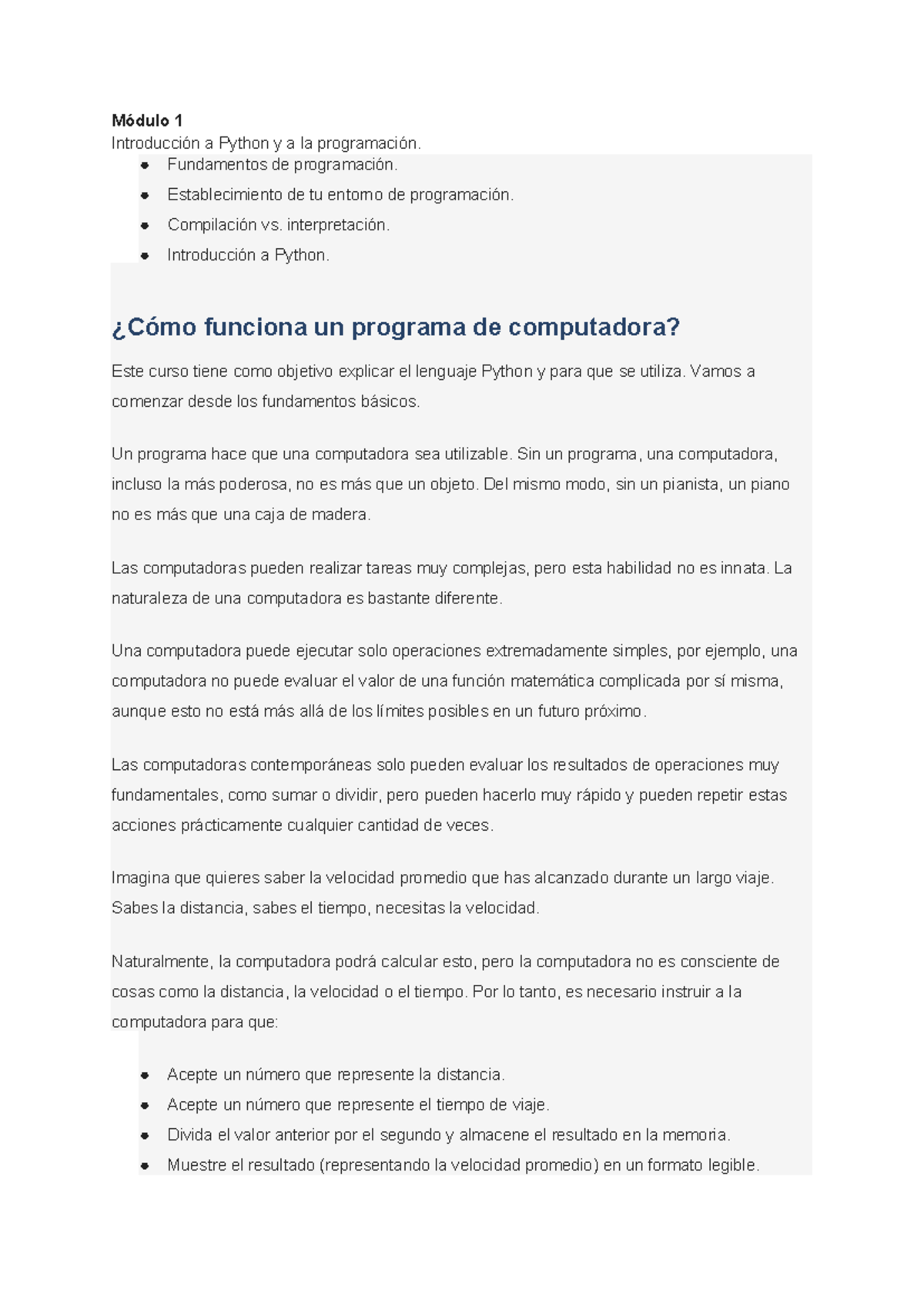 Módulo 1: Introducción a Python y Fundamentos de Programación - Studocu