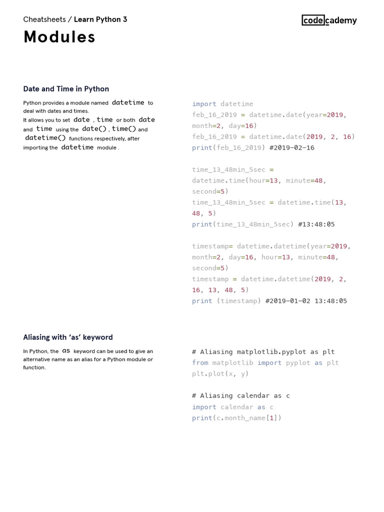 Learn Python 3 - Modules Cheatsheet - Codecademy | PDF | Python ...