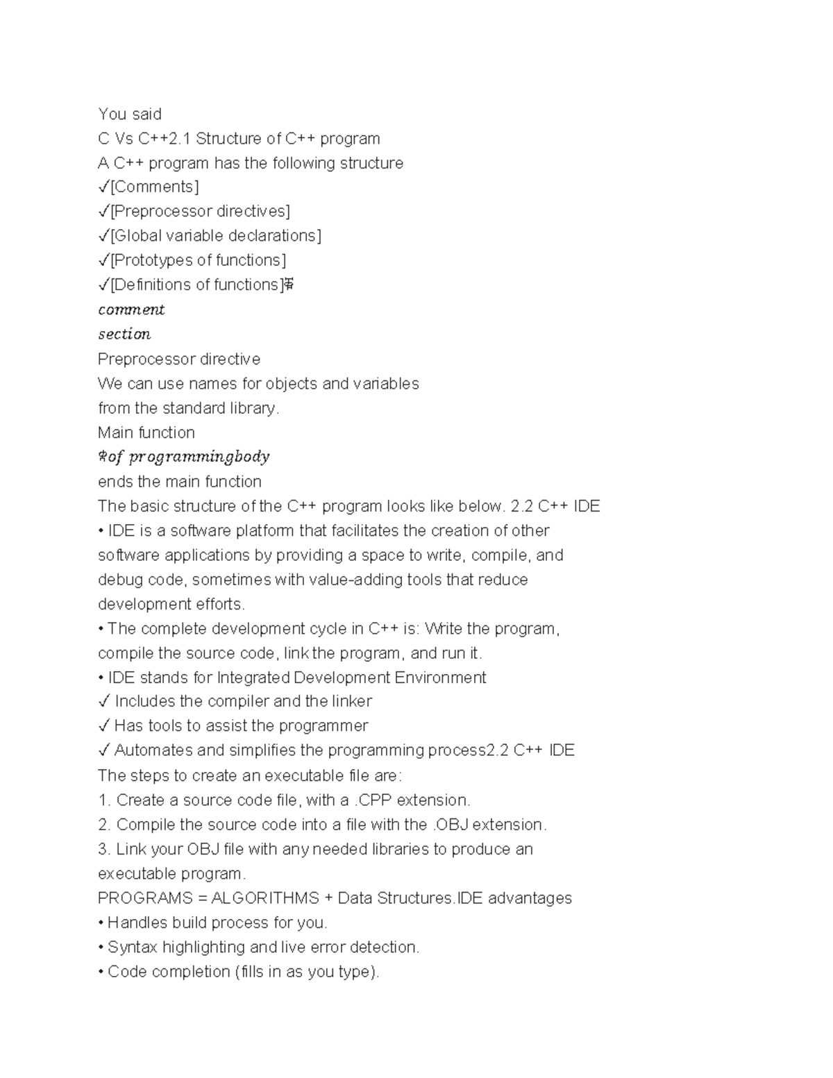 C++ Chapter 2: Program Structure and IDE Overview - Studocu