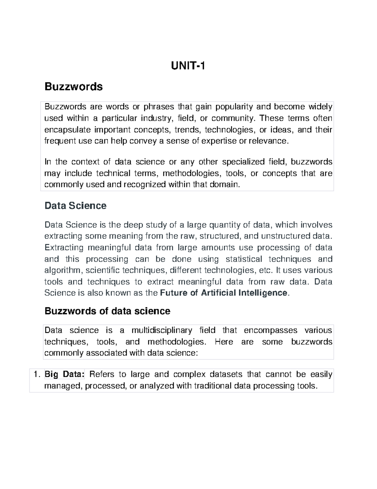 UNIT-1 - notes - UNIT- 1 Buzzwords Buzzwords are words or phrases that ...