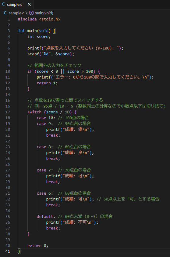 【C言語】switch文入門|break・default・複数caseを一気にマスター | エーテリア