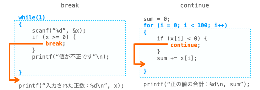 【C言語】breakとcontinueの違いと使いどころ|間違えやすいケースを徹底解説 | エーテリア