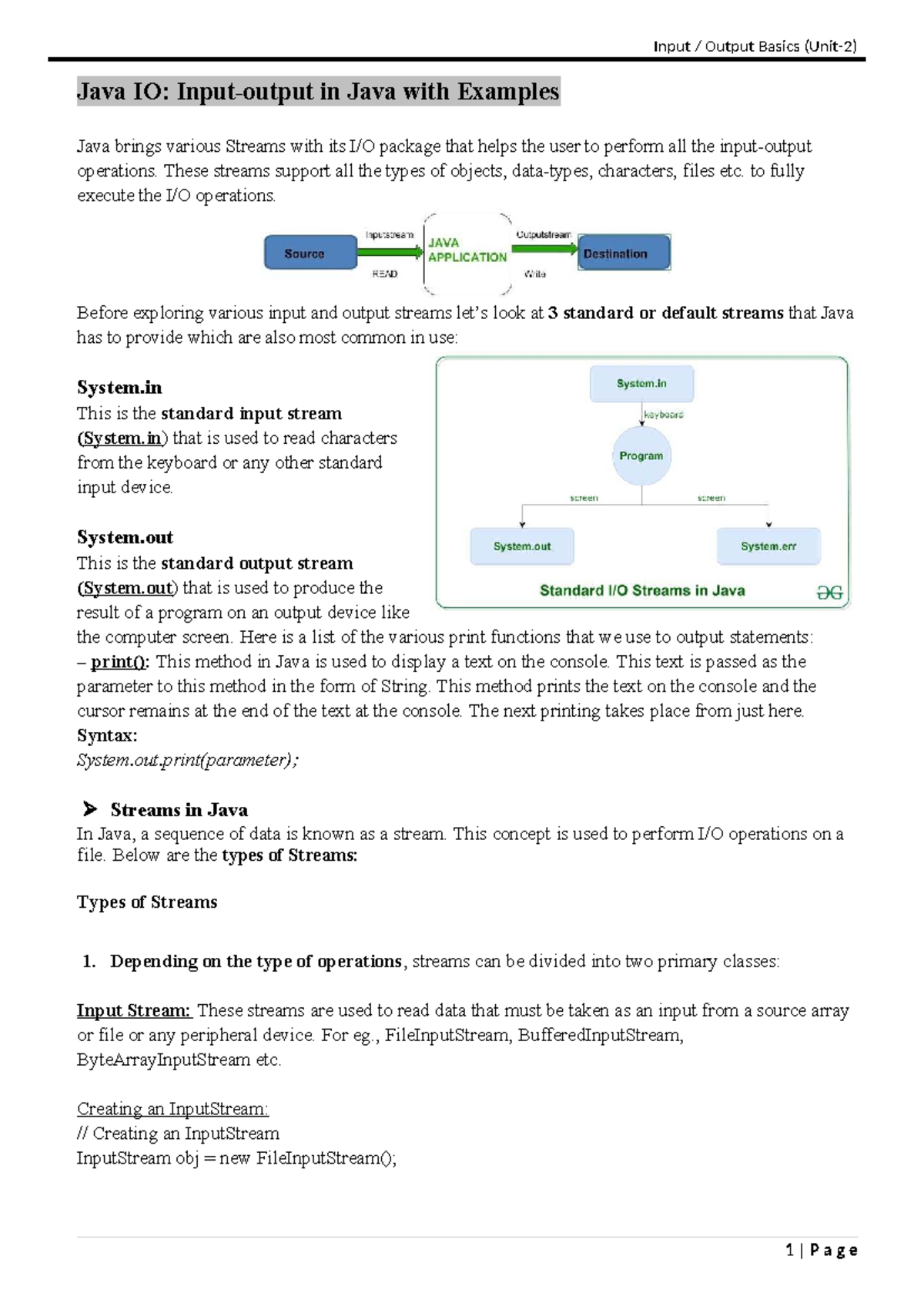 Unit-2: Input-Output Basics in Java with Examples and File Handling ...