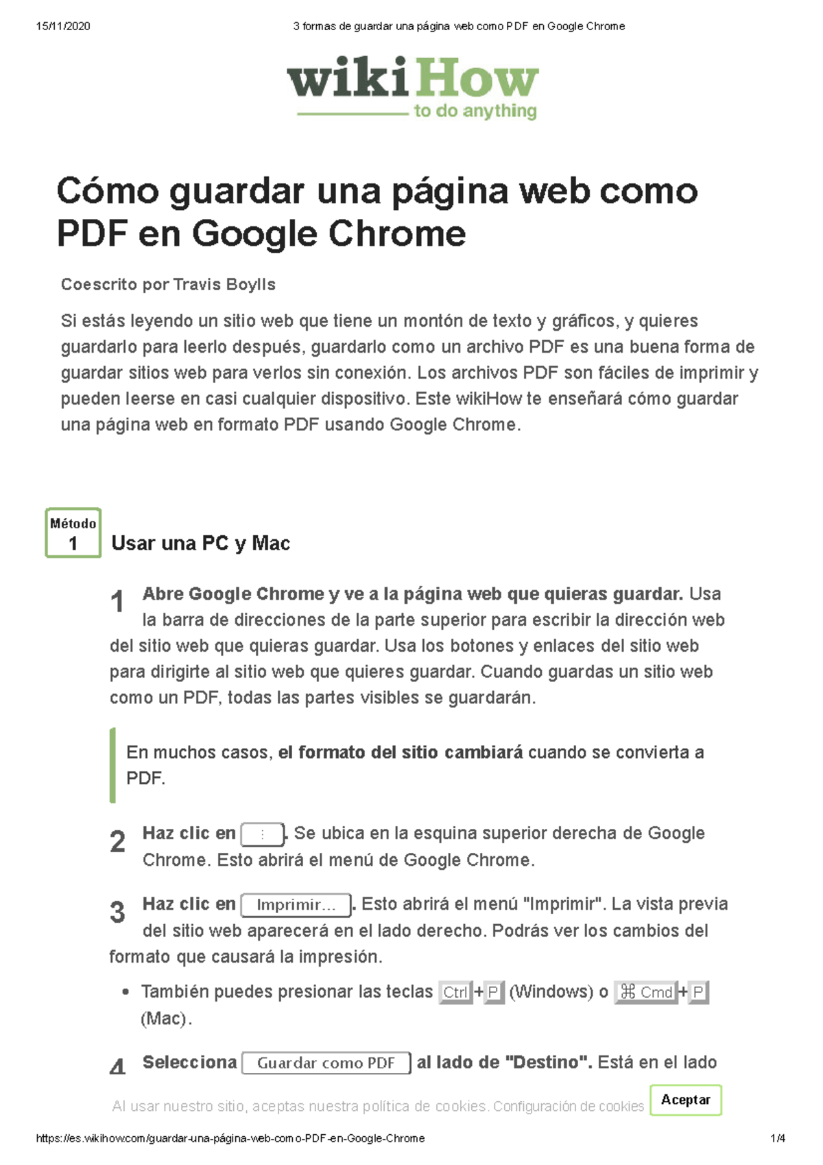 Cómo guardar y convertir una página web a PDF en Google Chrome (ejemplo ...