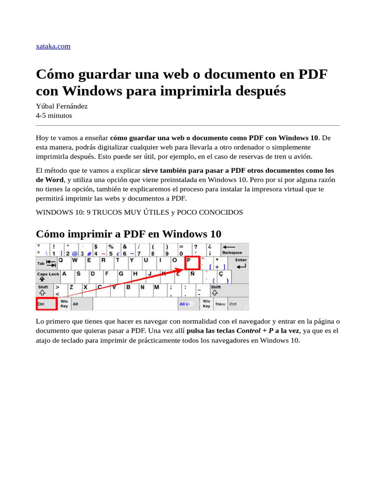 Cómo Guardar Una Web o Documento en PDF Con Windows para Imprimirla ...